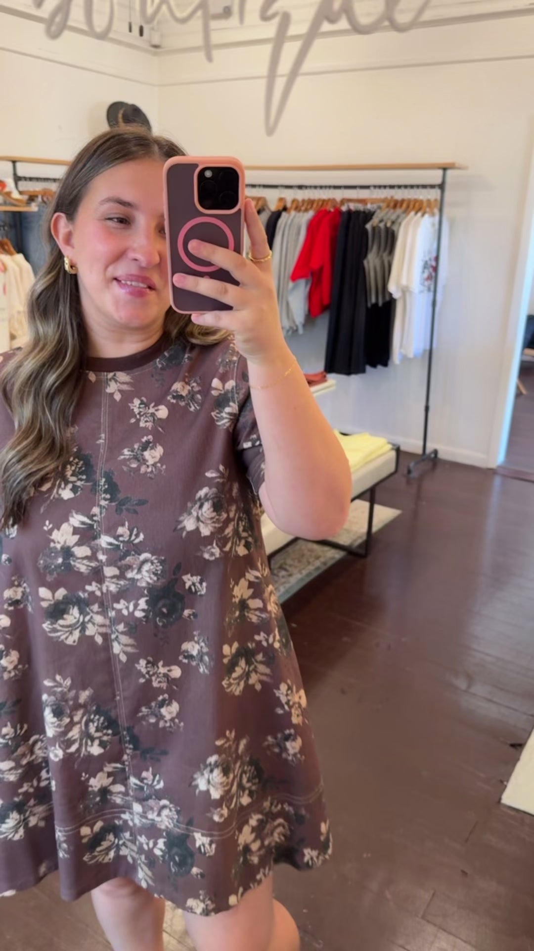 - Floral print top stitch dress with short sleeves, back zip closure, & side pockets