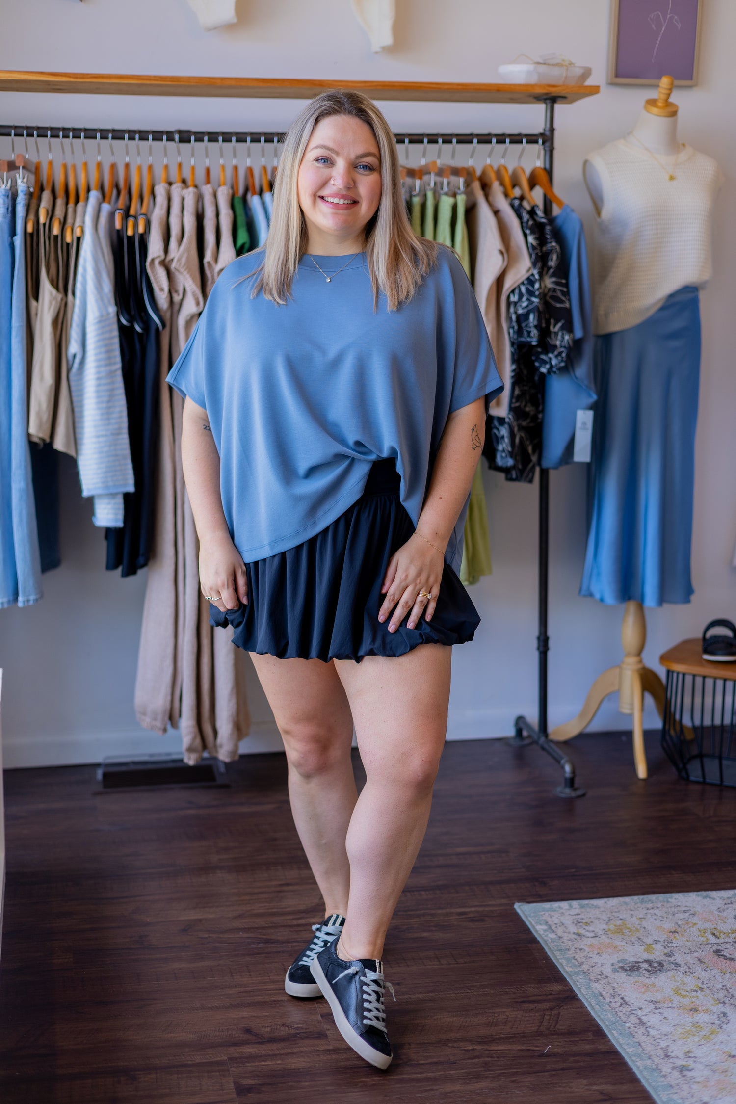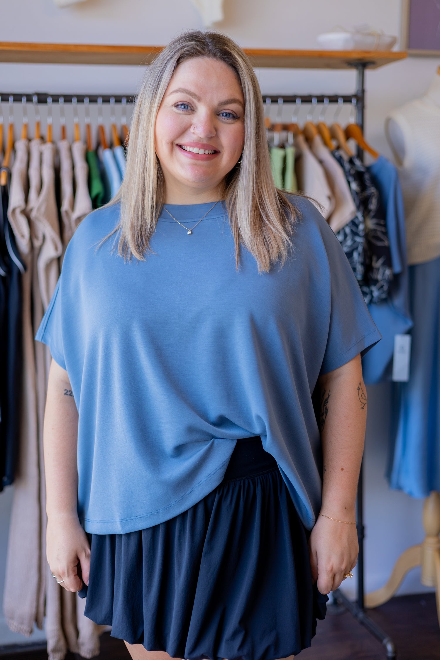 - Laguna boatneck top with boat neckline & dolman-shaped elbow-length sleeves