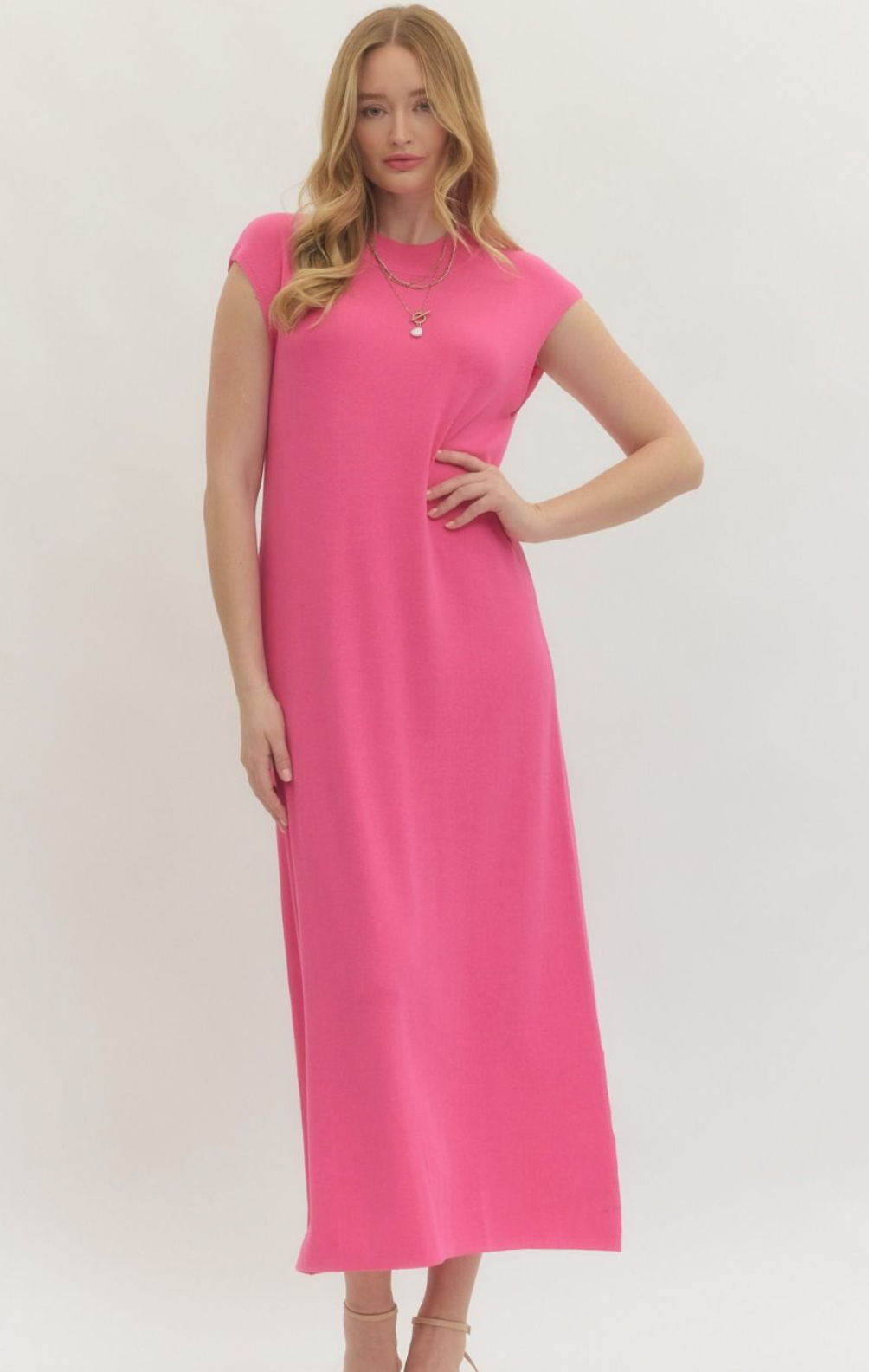 Cap sleeve midi dress with extended shoulder design & side pockets