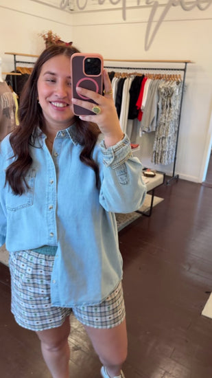 - Plaid holiday boxer shorts with non-functional buttons, elastic waistband & side pockets