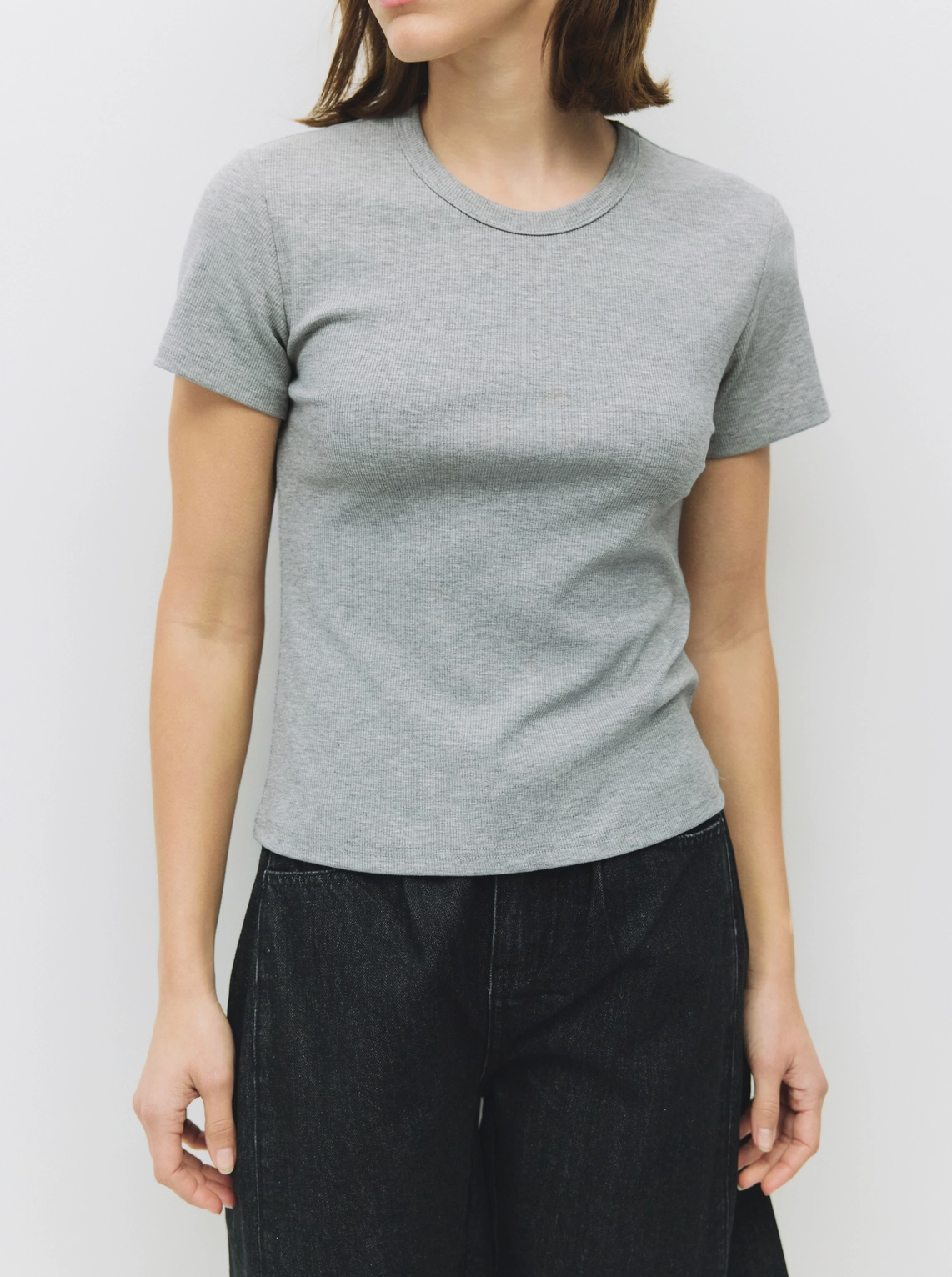 - The Miller top with round neckline & ribbed fabrication